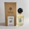 Coral 37 embodies timeless sophistication for the modern city dweller. Crisp bergamot opens the composition with clarity, while gardenia and jasmine add subtle floral complexity. Rich patchouli, leather, and sandalwood create a commanding woody foundation, anchored by the lingering warmth of musk. The result is a fragrance that is bold, elegant, and unmistakably masculine—perfect for making a statement in the urban landscape.